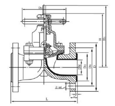 衬氟隔膜阀基本系列为全衬里G41F46、EG41F46、型堰式和G45F46型直流式。复合隔膜阀将阀体下部内腔与阀盖内腔隔开,并与之形成直流通道,使隔膜上部的阀杆、阀瓣等内件与介质完全隔离,省去填料密封结构,介质的内漏和外漏可同时避免。表面均匀包覆一层FEP。阀体通道内表面光滑,流体阻力小,CV值高,流通能力强,扭矩适中,采用四级密封结构并在密封面外配以耐温抗老化的SI橡胶的弹性衬垫阀座,完全达到介质的零泄漏。